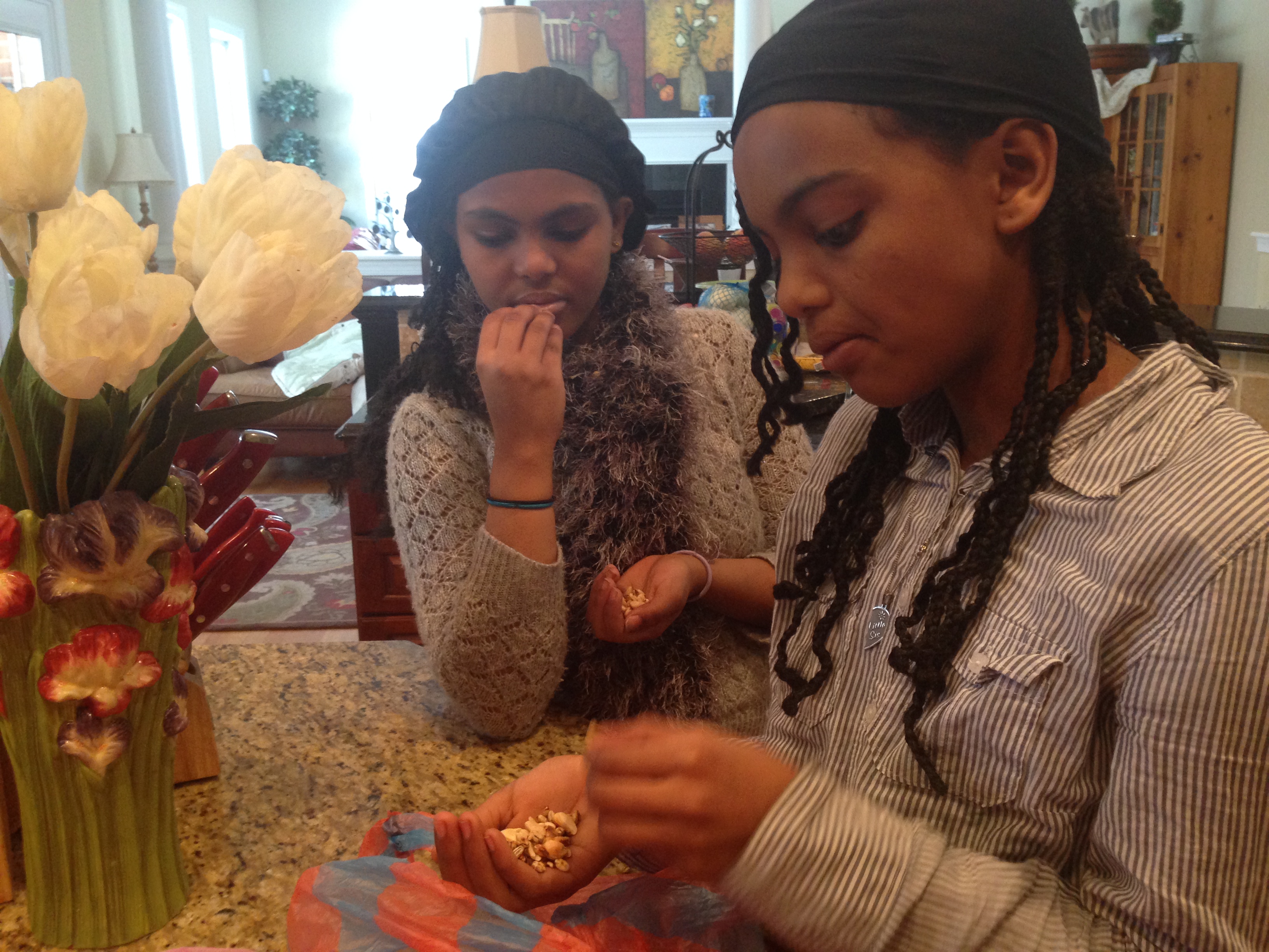 The food, they said, is called kolo. It was a mixture of nuts, seeds and grains. I would have mistaken it for bird food. The girls sniffed it…and touched it…and ran their fingers through it for a long time… before they tasted it and then savored it.