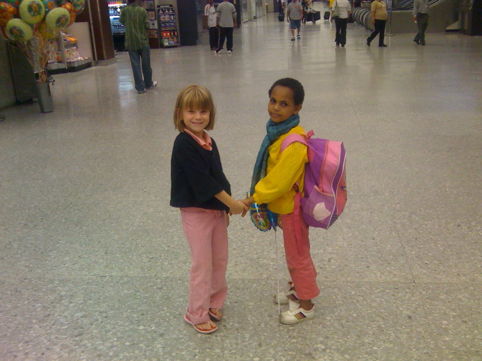 The tedious year-long process of paperwork became a dim memory when I witnessed the girls, who thought they would never see each other again,  reunite at  Dulles Airport in April of 2010.